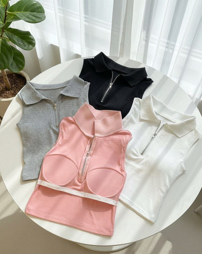 کراپ یقه دار زیپ دار